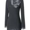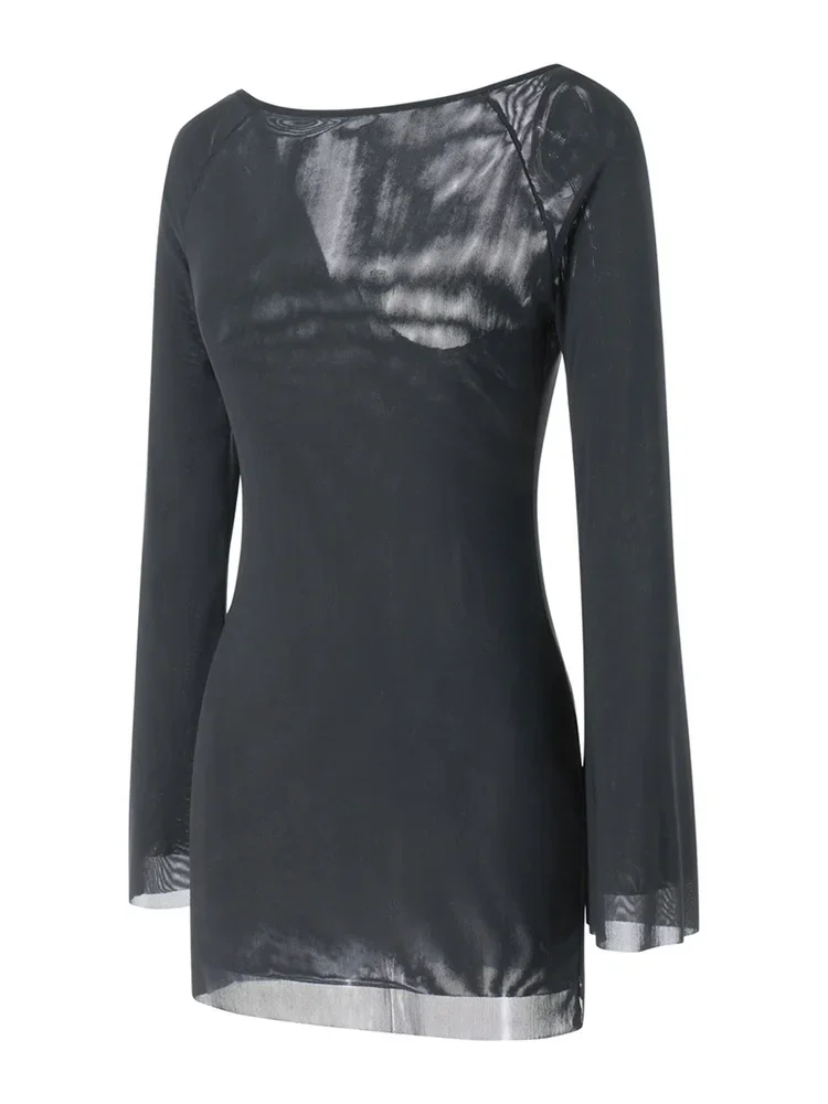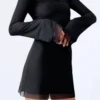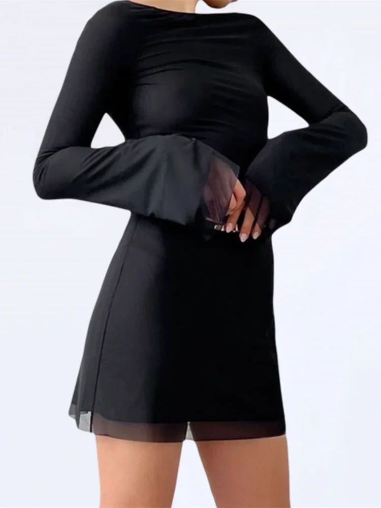 Women Autumn Short Dress Solid Color Long Sleeve Backless Bodycon Dress Casual Sexy Chic Y2K Dresses Clothes