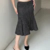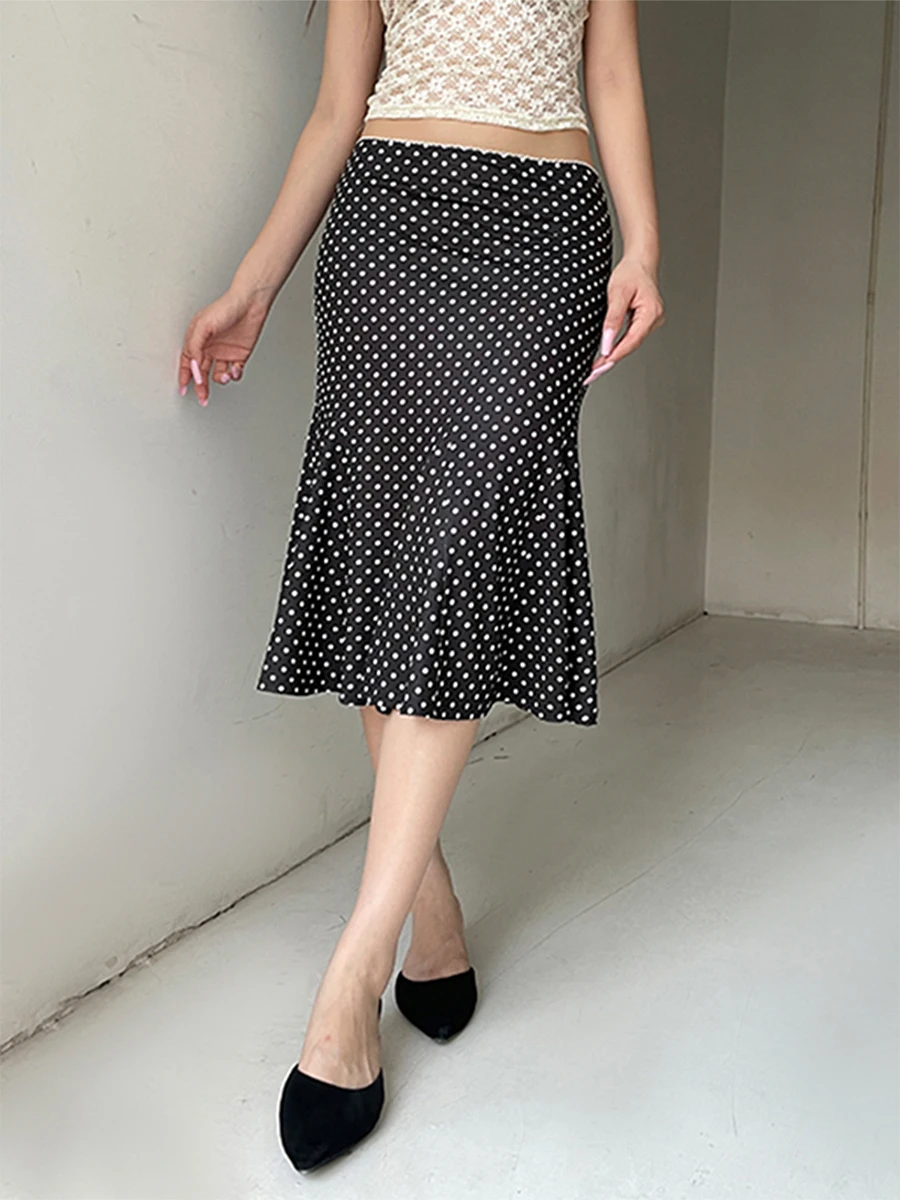 Women’s Fashion Midi Skirts Dot Print Low Waist Skirts Spring Summer Casual Skirts