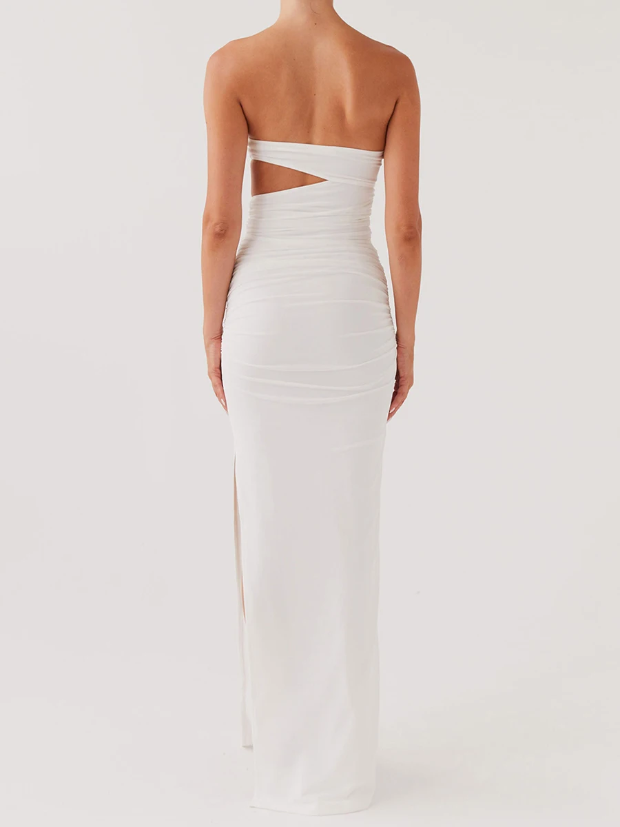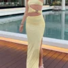 Women’s Strapless Tube Dress Solid Color Hollow Out Bodycon Long Dress for Party Evening Elegant Summer Dresses